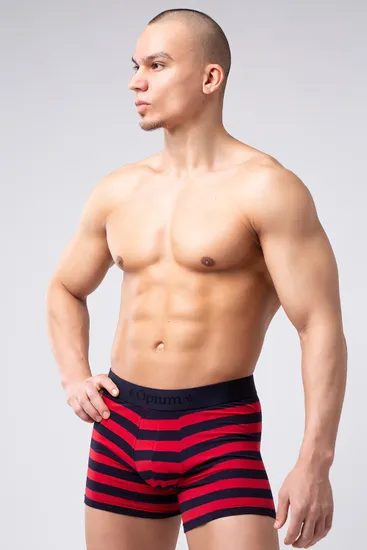 Мужские боксеры в полоску из мягкого хлопкового трикотажа. Комфортная шелковистая резинка, указывающая на принадлежность к бренду. Насыщенный синий в сочетании с роскошным красным - правильное сочетание расцветок для мужского белья.