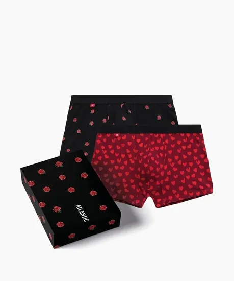 Подарочный набор из 2 шт. мужских трусов-шорт Atlantic цвета бургунди и черного из специальной лимитированной коллекции GIFTbox. Подарочная коллекция GIFTbox - это мужское нижнее белье с яркими, оригинальными и порой даже ироничными принтами. Белье из серии GIFTbox сразу же создаст восхитительное настроение и подарит незабываемые эмоции каждому мужчине. Мужские трусы-шорты 2GMH-026 от польского бренда Atlantic на каждый день: превосходно подойдут абсолютно любому мужчине как для повседневной носки, так и для активного занятия спортом (например, бега, фитнеса или силовых нагрузок). Спортивный крой этой модели гарантирует идеальную посадку по фигуре и максимальный комфорт. Внешняя пришивная резинка не давит, не скручивается и не натирает при носке. Облегающие мужские трусы шорты имеют среднюю линию талии, штанины стандартной длины и профилированный гульфик, поэтому могут подойти к любому типу одежды. В составе используется мягкий, приятный на ощупь хлопок в сочетании с эластаном. Трикотажное хлопковое полотно является прочным материалом, устойчивым к высоким температурам и растяжению, благодаря чему нижнее белье надолго сохраняет свой внешний вид и потребительские свойства. В упаковке представлено двое шорт в следующих расцветках: черный с ярким и игривым рисунком в виде роз; бургунди с рисунком в виде красных сердец. Сочные и яркие цвета и принты делают данную модель особенным и идеальным подарком не только в День Святого Валентина, но и на Новый Год или даже в День рождения. Брендированная резинка из микрофибры не только обеспечивает приятные тактильные ощущения для кожи, но и придает особый шарм этому нижнему белью, благодаря наличию оригинального принта в виде поцелуя на поясе. А подарочная упаковка, выполненная в виде одного из принтов данного набора мужского нижнего белья, лишь закрепляет статус данной модели в качестве самого идеального подарка. Нижнее белье Атлантик будет превосходным подарком для мужчин всех возрастов: молодым парням и подросткам подойдут модели нижнего белья в яркой цветовой гамме и с паттерном или рисунком, более взрослым мужчинам - нижнее белье в сдержанных или строгих цветах, хотя иногда можно нарушить правила и поэкспериментировать.