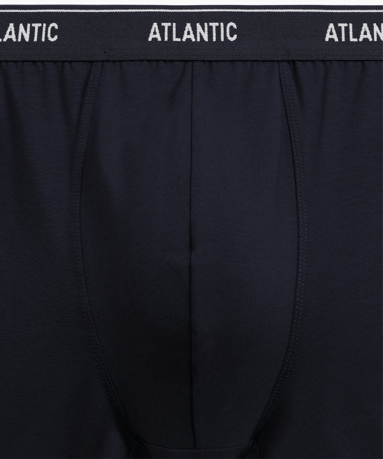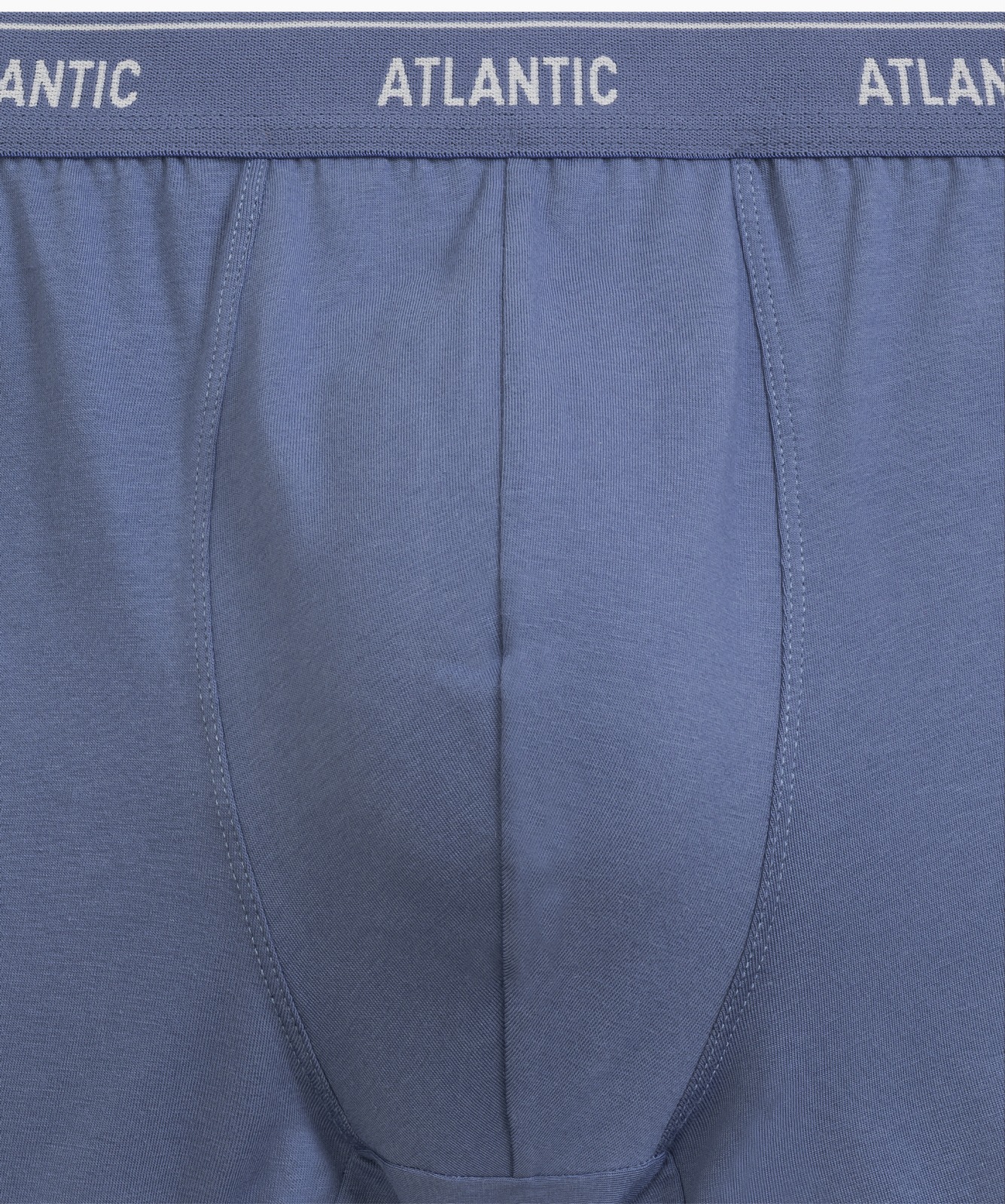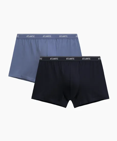 Набор из 2 шт. мужских трусов-шорт Atlantic деним и тёмно-синего цвета. Мужские однотонные трусы-шорты 2RMH-011 от польского бренда Atlantic на каждый день: превосходно подойдут абсолютно любому мужчине как для повседневной носки, так и для активного занятия спортом (например, бега, фитнеса, физических или силовых нагрузок). Анатомически выверенный спортивный крой этой модели гарантирует идеальную посадку по фигуре и максимальный комфорт. Внешняя пришивная резинка не давит, не скручивается и не натирает при носке. Облегающие мужские трусы шорты имеют среднюю линию талии, штанины стандартной длины и профилированный гульфик, поэтому могут подойти к любому типу одежды. Отличительная особенность данной модели - силиконовый логотип на резинке с нежным, блестящим покрытием. В составе используется мягкий, приятный на ощупь хлопок в сочетании с эластаном. Трикотажное хлопковое полотно является прочным материалом, устойчивым к высоким температурам и растяжению, благодаря чему нижнее белье надолго сохраняет свой внешний вид и потребительские свойства. Брендированная резинка из микрофибры обеспечивает приятные тактильные ощущения для кожи. Нижнее белье Атлантик будет превосходным подарком для мужчин всех возрастов.