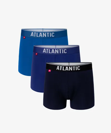 Набор из 3 шт. мужских трусов-шорт Atlantic бирюзового, голубого и темно-синего цвета. Мужские однотонные трусы-шорты 3MH-045 от польского бренда Atlantic на каждый день: превосходно подойдут абсолютно любому мужчине как для повседневной носки, так и для активного занятия спортом (например, бега, фитнеса или силовых нагрузок). Спортивный крой этой модели гарантирует идеальную посадку по фигуре и максимальный комфорт. Внешняя пришивная резинка не давит, не скручивается и не натирает при носке. Облегающие мужские трусы шорты имеют среднюю линию талии, штанины стандартной длины и профилированный гульфик, поэтому могут подойти к любому типу одежды. В составе используется мягкий, приятный на ощупь хлопок в сочетании с эластаном. Трикотажное хлопковое полотно является прочным материалом, устойчивым к высоким температурам и растяжению, благодаря чему нижнее белье надолго сохраняет свой внешний вид и потребительские свойства. В упаковке представлено трое шорт в различных вариантах расцветок - от строгого классического до яркого молодежного, брендированная резинка из микрофибры выполнена в тон основной расцветке и обеспечивает приятные тактильные ощущения для кожи. Нижнее белье Атлантик будет превосходным подарком для мужчин всех возрастов: молодым парням и подросткам подойдут модели нижнего белья в яркой цветовой гамме и с паттерном или рисунком, более взрослым мужчинам - нижнее белье в сдержанных или строгих цветах, хотя иногда можно нарушить правила и поэкспериментировать. Кроме того, в нашем интернет-магазине Вы сможете приобрести трусы шорты Атлантик 3MH-045 из наличия по самым выгодным ценам. Широкая размерная сетка с самыми популярными (от S до XXL) и большими (3XL, 4XL) размерами, а также стильная фирменная упаковка нашего нижнего белья помогут однозначно сделать Вам верный выбор!