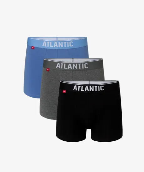 Набор из 3 шт. мужских трусов-шорт Atlantic бирюзового, голубого и темно-синего цвета. Мужские однотонные трусы-шорты 3MH-045 от польского бренда Atlantic на каждый день: превосходно подойдут абсолютно любому мужчине как для повседневной носки, так и для активного занятия спортом (например, бега, фитнеса или силовых нагрузок). Спортивный крой этой модели гарантирует идеальную посадку по фигуре и максимальный комфорт. Внешняя пришивная резинка не давит, не скручивается и не натирает при носке. Облегающие мужские трусы шорты имеют среднюю линию талии, штанины стандартной длины и профилированный гульфик, поэтому могут подойти к любому типу одежды. В составе используется мягкий, приятный на ощупь хлопок в сочетании с эластаном. Трикотажное хлопковое полотно является прочным материалом, устойчивым к высоким температурам и растяжению, благодаря чему нижнее белье надолго сохраняет свой внешний вид и потребительские свойства. В упаковке представлено трое шорт в различных вариантах расцветок - от строгого классического до яркого молодежного, брендированная резинка из микрофибры выполнена в тон основной расцветке и обеспечивает приятные тактильные ощущения для кожи. Нижнее белье Атлантик будет превосходным подарком для мужчин всех возрастов: молодым парням и подросткам подойдут модели нижнего белья в яркой цветовой гамме и с паттерном или рисунком, более взрослым мужчинам - нижнее белье в сдержанных или строгих цветах, хотя иногда можно нарушить правила и поэкспериментировать. Кроме того, в нашем интернет-магазине Вы сможете приобрести трусы шорты Атлантик 3MH-045 из наличия по самым выгодным ценам. Широкая размерная сетка с самыми популярными (от S до XXL) и большими (3XL, 4XL) размерами, а также стильная фирменная упаковка нашего нижнего белья помогут однозначно сделать Вам верный выбор!