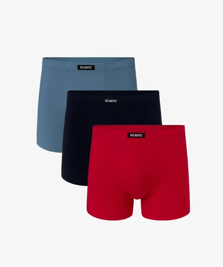 Набор из 3 шт. мужских трусов-шорт Atlantic цвета деним, темно-синего и красного цвета. Мужские однотонные трусы-шорты 3MH-048 от польского бренда Atlantic на каждый день: превосходно подойдут абсолютно любому мужчине как для повседневной носки, так и для активного занятия спортом (например, бега или фитнеса). Спортивный крой этой модели гарантирует идеальную посадку по фигуре и максимальный комфорт. Скрытая туннельная резинка не давит и не натирает при носке, а также обеспечивает контакт только с натуральным материалом. Облегающие мужские трусы шорты имеют среднюю линию талии, штанины стандартной длины и профилированный гульфик, поэтому могут подойти к любому типу одежды. В составе используется мягкий, приятный на ощупь хлопок в сочетании с эластаном. Трикотажное хлопковое полотно является прочным материалом, устойчивым к высоким температурам и растяжению, благодаря чему нижнее белье надолго сохраняет свой внешний вид и потребительские свойства. В упаковке представлено трое шорт в различных вариантах расцветок - от строгого классического до яркого молодежного. Нижнее белье Атлантик будет превосходным подарком для мужчин всех возрастов: молодым парням и подросткам подойдут модели нижнего белья в яркой цветовой гамме и с паттерном или рисунком, более взрослым мужчинам - нижнее белье в сдержанных или строгих цветах, хотя иногда можно нарушить правила и поэкспериментировать. Кроме того, в нашем интернет-магазине Вы сможете приобрести трусы шорты Атлантик 3MH-048 из наличия по самым выгодным ценам. Широкая размерная сетка с самыми популярными (от S до XXL) и большими (3XL, 4XL) размерами, а также стильная фирменная упаковка нашего нижнего белья помогут однозначно сделать Вам верный выбор!