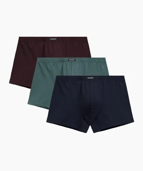 Набор из трёх мужских трусов-шорт Atlantic 3MH-048 — это повседневный комфорт в трёх оттенках. В комплект входят три однотонных модели: баклажановая, цвета зелёного леса и тёмно-синяя. Анатомический крой со средней линией талии и скрытой резинкой обеспечивает идеальную посадку без дискомфорта. Мягкий хлопок с добавлением эластана приятен к телу и отлично сохраняет форму после множества стирок. Универсальный дизайн подходит для любой повседневной активности. Широкий размерный ряд — от S до 4XL — предлагает оптимальное решение для любого телосложения. Стильная упаковка делает этот набор отличным готовым подарком. Atlantic 3MH-048 — это разумный и практичный выбор для тех, кто ценит качество и комфорт каждый день.