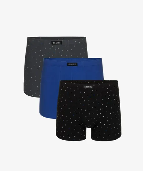 Набор из 3 шт. мужских трусов-шорт Atlantic цвета деним, темно-синего и красного цвета. Мужские однотонные трусы-шорты 3MH-163 от польского бренда Atlantic на каждый день: превосходно подойдут абсолютно любому мужчине как для повседневной носки, так и для активного занятия спортом (например, бега или фитнеса). Спортивный крой этой модели гарантирует идеальную посадку по фигуре и максимальный комфорт. Скрытая туннельная резинка не давит и не натирает при носке, а также обеспечивает контакт только с натуральным материалом. Облегающие мужские трусы шорты имеют среднюю линию талии, штанины стандартной длины и профилированный гульфик, поэтому могут подойти к любому типу одежды. В составе используется мягкий, приятный на ощупь хлопок в сочетании с эластаном. Трикотажное хлопковое полотно является прочным материалом, устойчивым к высоким температурам и растяжению, благодаря чему нижнее белье надолго сохраняет свой внешний вид и потребительские свойства. В упаковке представлено трое шорт в различных вариантах расцветок - от строгого классического до яркого молодежного. Нижнее белье Атлантик будет превосходным подарком для мужчин всех возрастов: молодым парням и подросткам подойдут модели нижнего белья в яркой цветовой гамме и с паттерном или рисунком, более взрослым мужчинам - нижнее белье в сдержанных или строгих цветах, хотя иногда можно нарушить правила и поэкспериментировать.