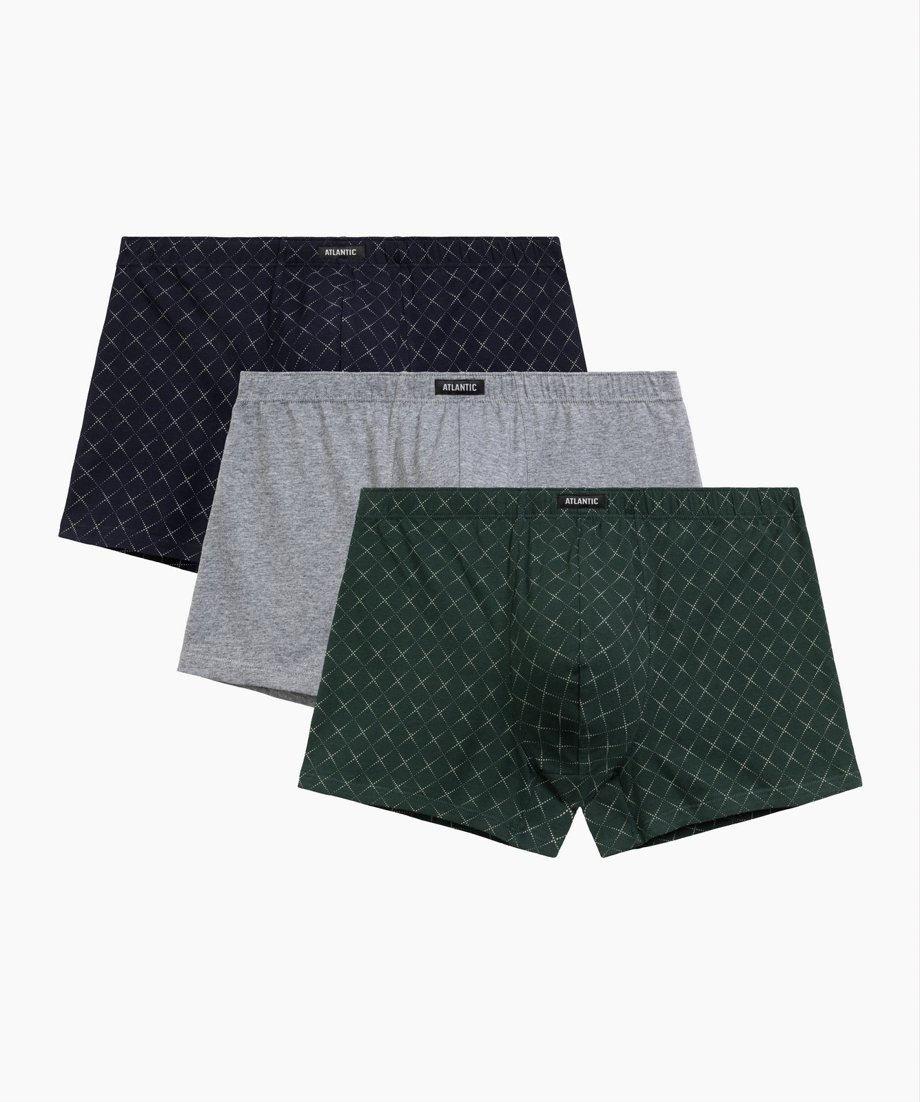 Набор из 3 мужских трусов-шорт Atlantic 3MH-216 — идеальный баланс стиля и комфорта. В комплекте три модели в модных оттенках — тёмно-синий, серый меланж и зелёный, включая однотонный вариант и варианты с классическими принтами. Анатомический крой со средней линией талии и профилированным гульфиком обеспечивает идеальную посадку, а скрытая туннельная резинка исключает дискомфорт при носке. Мягкий хлопок с добавлением эластана гарантирует комфорт в течение всего дня и сохраняет форму после множества стирок. Универсальный дизайн подходит для повседневной активности. Размерная сетка от S до 4XL учитывает особенности разных типов фигуры. Стильная упаковка делает набор отличным подарком. Трусы-шорты Atlantic 3MH-216 — разумный выбор для тех, кто ценит качество и удобство в любой ситуации.