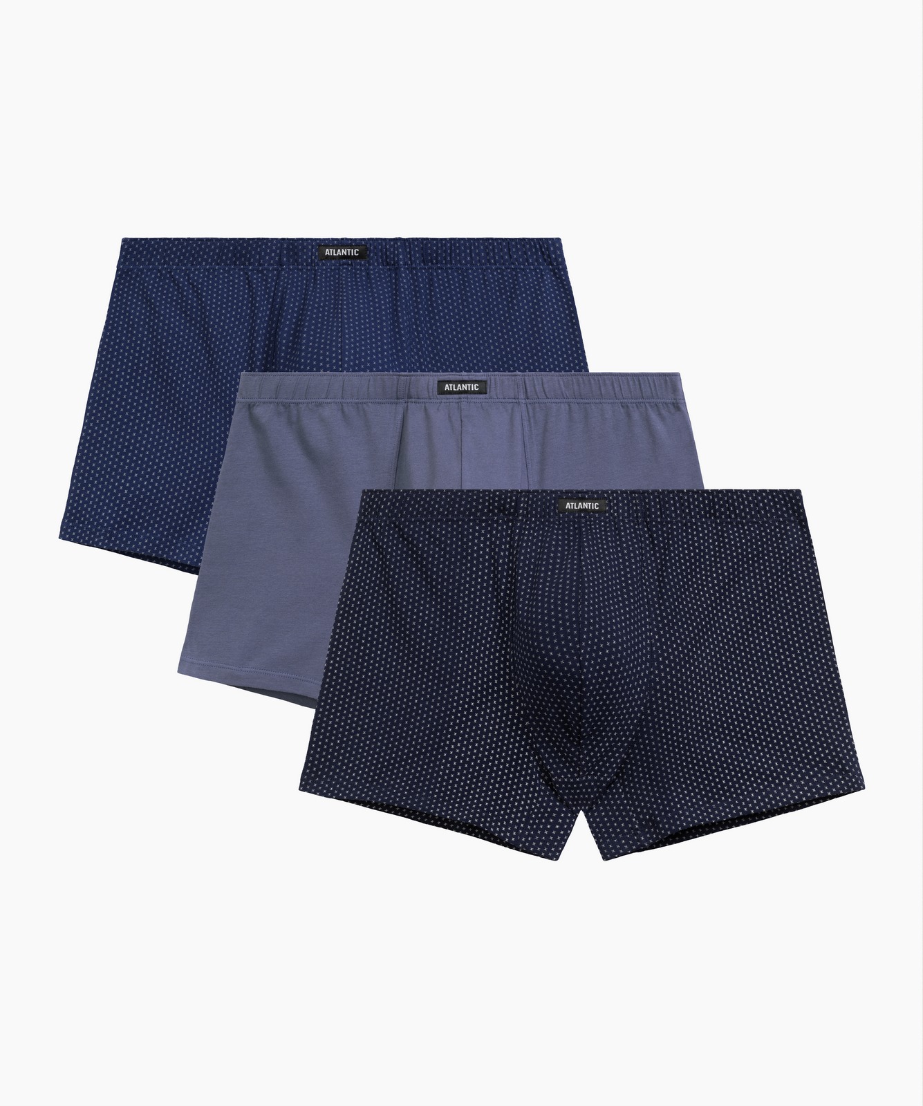 Набор из 3 мужских трусов-шорт Atlantic 3MH-218 — идеальное сочетание комфорта и стиля! Комплект включает три модели в актуальных цветах — кобальтовом, деним и темно-голубом, с анатомическим кроем для идеальной посадки. Мягкий хлопок с добавлением эластана обеспечивает комфорт при повседневной носке и занятиях спортом. Удобная туннельная резинка не давит, а профилированный гульфик и штанины стандартной длины делают эти трусы-шорты универсальными. Прочный трикотаж устойчив к растяжению и сохраняет форму даже после множества стирок. Набор представлен как в однотонных цветах, так и с классическим принтом. Широкая размерная сетка от S до 4XL подойдет мужчинам любого телосложения. Отличный подарок для тех, кто ценит качество и удобство!