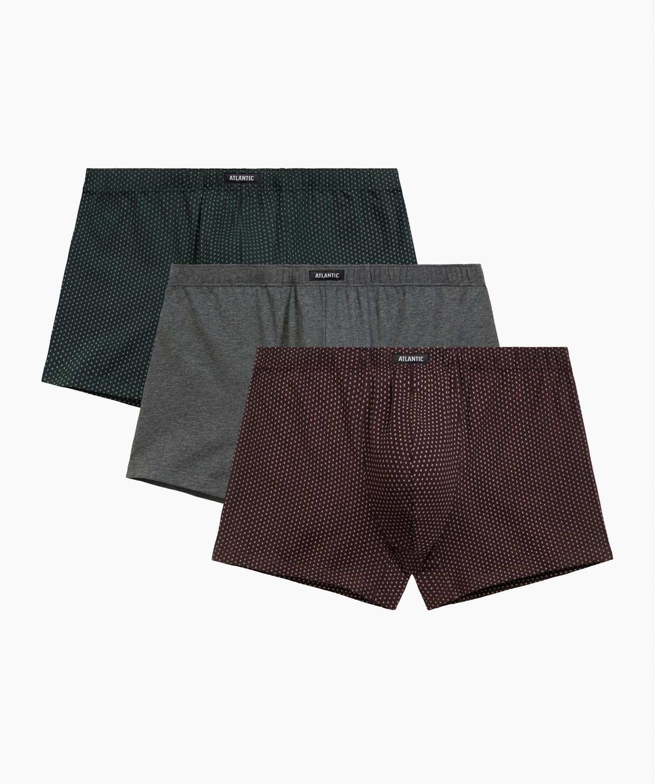 Набор из 3 мужских трусов-шорт Atlantic 3MH-218 — идеальное сочетание комфорта и стиля! Комплект включает три модели в актуальных цветах — изумрудном, тёмно-сером меланж и баклажановым, с анатомическим кроем для идеальной посадки. Мягкий хлопок с добавлением эластана обеспечивает комфорт при повседневной носке и занятиях спортом. Удобная туннельная резинка не давит, а профилированный гульфик и штанины стандартной длины делают эти трусы-шорты универсальными. Прочный трикотаж устойчив к растяжению и сохраняет форму даже после множества стирок. Набор представлен как в однотонных цветах, так и с классическим принтом. Широкая размерная сетка от S до 4XL подойдет мужчинам любого телосложения. Отличный подарок для тех, кто ценит качество и удобство!