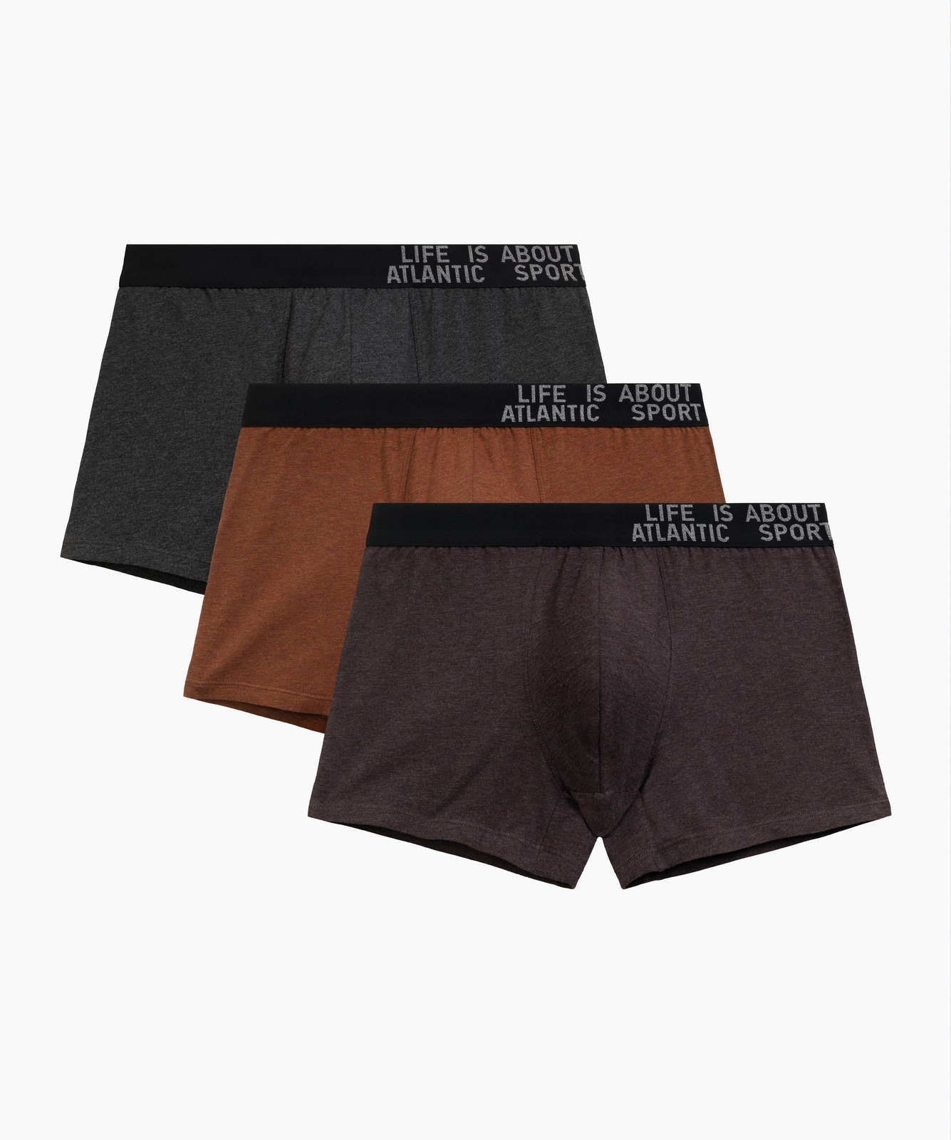 Набор из трех мужских трусов-шорт Atlantic в стильных меланжевых расцветках — темно-серой, медно-багряной и коричневой — станет отличным дополнением мужского гардероба. Модель 3MH-226 от польского бренда Atlantic сочетает анатомический крой и универсальный дизайн для повседневной носки и активных занятий спортом. Изделия выполнены из мягкого хлопка с добавлением эластана, что обеспечивает идеальную посадку по фигуре и свободу движений. Ключевой особенностью модели является стильный меланжевый эффект полотна и контрастная надпись на брендированной резинке из микрофибры, которая мягко прилегает к телу, не сдавливая и не натирая кожу. Профилированный гульфик и средняя линия талии гарантируют комфорт в течение всего дня, а прочное трикотажное полотно устойчиво к деформации и сохраняет форму после многократных стирок. Набор представлен в трех модных меланжевых расцветках, которые подойдут мужчинам разного возраста и стилевых предпочтений. Доступны размеры от S до XXL, а также большие размеры 3XL и 4XL. Стильная фирменная упаковка делает этот набор отличным подарком для любого случая.