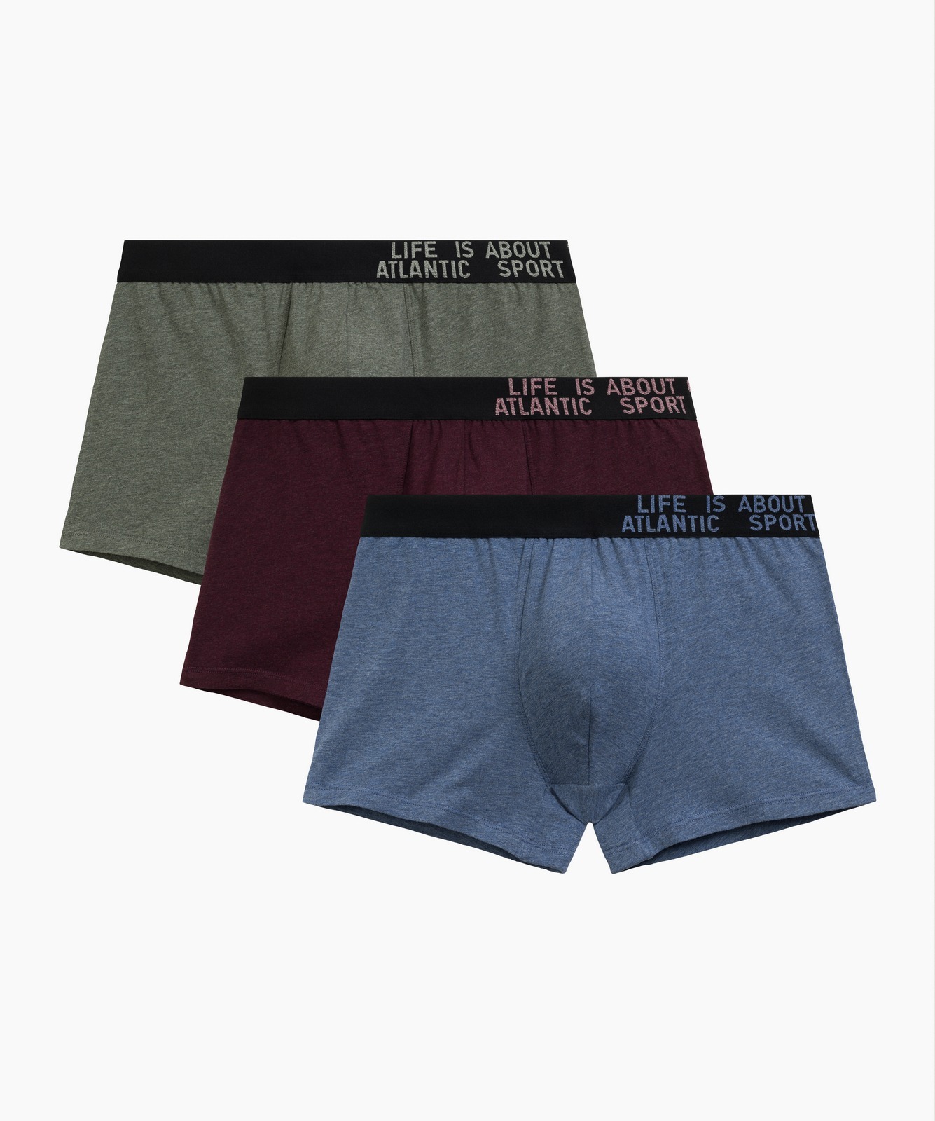 Набор из трех мужских трусов-шорт Atlantic в стильных меланжевых расцветках — зеленой, винной и голубой — станет отличным решением для повседневной носки и активного образа жизни. Модель 3MH-226 от польского бренда Atlantic выполнена из мягкого хлопка с добавлением эластана, что обеспечивает идеальную посадку по фигуре и комфорт в течение всего дня. Анатомический крой со средней линией талии и стандартной длиной штанин подходит для любого типа одежды, а профилированный гульфик гарантирует удобство при движении. Ключевой особенностью модели является стильный меланжевый эффект полотна и контрастная брендированная резинка с меланжевой надписью. Резинка из микрофибры мягко прилегает к телу, не сдавливая и не натирая кожу, а фирменная вышивка сбоку добавляет изделию индивидуальности. Прочное трикотажное полотно устойчиво к деформации и сохраняет форму после многократных стирок. Набор представлен в трех модных расцветках, которые подойдут мужчинам разного возраста — от молодежи до зрелых представителей сильного пола. Доступны размеры от S до XXL, а также большие размеры 3XL и 4XL. Стильная фирменная упаковка делает этот набор отличным подарком для любого случая.