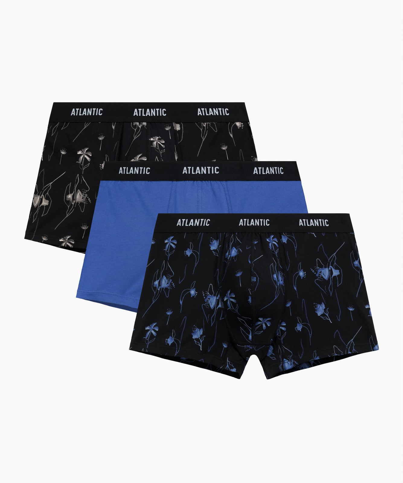 Набор из трех мужских трусов-шорт Atlantic анатомического кроя — это практичное решение для повседневной носки и активного образа жизни. В комплект входят три модели: одна модель однотонная и две с контрастным ярким принтом в виде цветов в сочетании черного и голубого цвета. Модель 3MH-229 от польского бренда Atlantic изготовлена из мягкого хлопка с добавлением эластана, который обеспечивает идеальную посадку по фигуре и сохраняет форму после интенсивных нагрузок. Анатомический крой со средней линией талии и стандартной длиной штанин подходит для любого типа одежды. Профилированный гульфик и брендированная резинка из микрофибры с объемным логотипом гарантируют комфорт в течение всего дня, не сдавливая и не натирая кожу. Прочное трикотажное полотно устойчиво к деформации и многократным стиркам, сохраняя внешний вид и потребительские свойства. Набор сочетает классические черные оттенки и модный цвет светлый хаки, что делает его универсальным подарком для мужчин любого возраста. Доступны размеры от S до XXL, а также большие размеры 3XL и 4XL. Стильная фирменная упаковка дополняет комплект, делая его готовым презентом для любого случая.