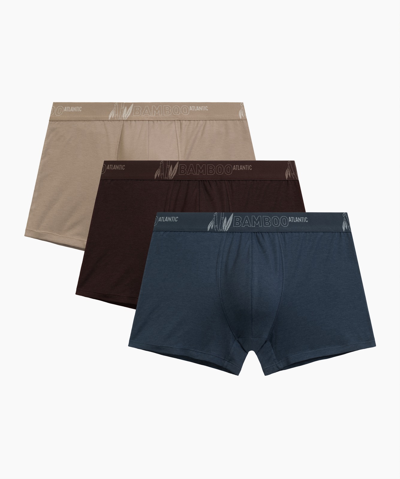 Набор из 3 мужских трусов-шорт Atlantic 3MH-231, бежевого, коричневого и сине-зелёного цвета. Мягкие и дышащие шорты из бамбукового волокна с хлопком и эластаном, обладающие антибактериальными и терморегулирующими свойствами. Спортивный крой обеспечивает идеальную посадку и комфорт при повседневной носке и активных тренировках. Удобная пришивная резинка из микрофибры с молочной нитью не сдавливает и не натирает кожу. Средняя линия талии и штанины стандартной длины подходят под любой тип одежды. Стильная упаковка делает этот набор отличным подарком. Польский бренд Atlantic предлагает премиальное мужское белье для ценителей качества.