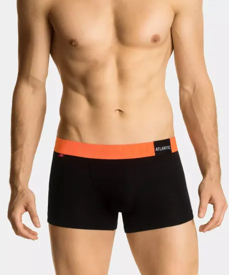 Мужские трусы-шорты Atlantic черно-оранжевого цвета из премиальной коллекции. Коллекция Premium - это выбор взыскательных мужчин, которые делают ставку на высочайшее качество, уникальный дизайн и инновационные технологические решения. Мужские однотонные трусы-шорты MH-1188 от польского бренда Atlantic на каждый день: превосходно подойдут абсолютно любому мужчине как для повседневной носки, так и для активного занятия спортом (например, бега, фитнеса или силовых нагрузок). Спортивный крой этой модели гарантирует идеальную посадку по фигуре и максимальный комфорт. Внешняя пришивная резинка не давит, не скручивается и не натирает при носке. Облегающие мужские трусы шорты имеют среднюю линию талии, штанины стандартной длины и профилированный гульфик, поэтому могут подойти к любому типу одежды. В составе используется бархатистый и очень приятный на ощупь микромодал в сочетании с эластаном. В основе как модала, так и микромодала используется экологически чистое целлюлозное волокно, полученное из натуральной древесины бука. Отличительная разница между ними лишь в том, что микромодал чуть тоньше, чем модал. Такой премиальный материал обладает прекрасными абсорбирующими свойствами благодаря тому, что при его производстве используется гораздо меньше воды, чем при создании других трикотажных тканей. Также модал имеет характерный атласный блеск, визуально напоминающий шелк. Воздушная и легкая текстура микромодала гарантирует максимально комфортные тактильные ощущения для тела во время носки. Данная модель мужского нижнего белья представлена несколькими вариантами цвета, а брендированная резинка из микрофибры с молочной нитью обеспечивает приятные тактильные ощущения для кожи. Нижнее белье Атлантик будет превосходным подарком для мужчин всех возрастов: молодым парням и подросткам подойдут модели нижнего белья в яркой цветовой гамме и с паттерном или рисунком, более взрослым мужчинам - нижнее белье в сдержанных или строгих цветах, хотя иногда можно нарушить правила и поэкспериментировать.
