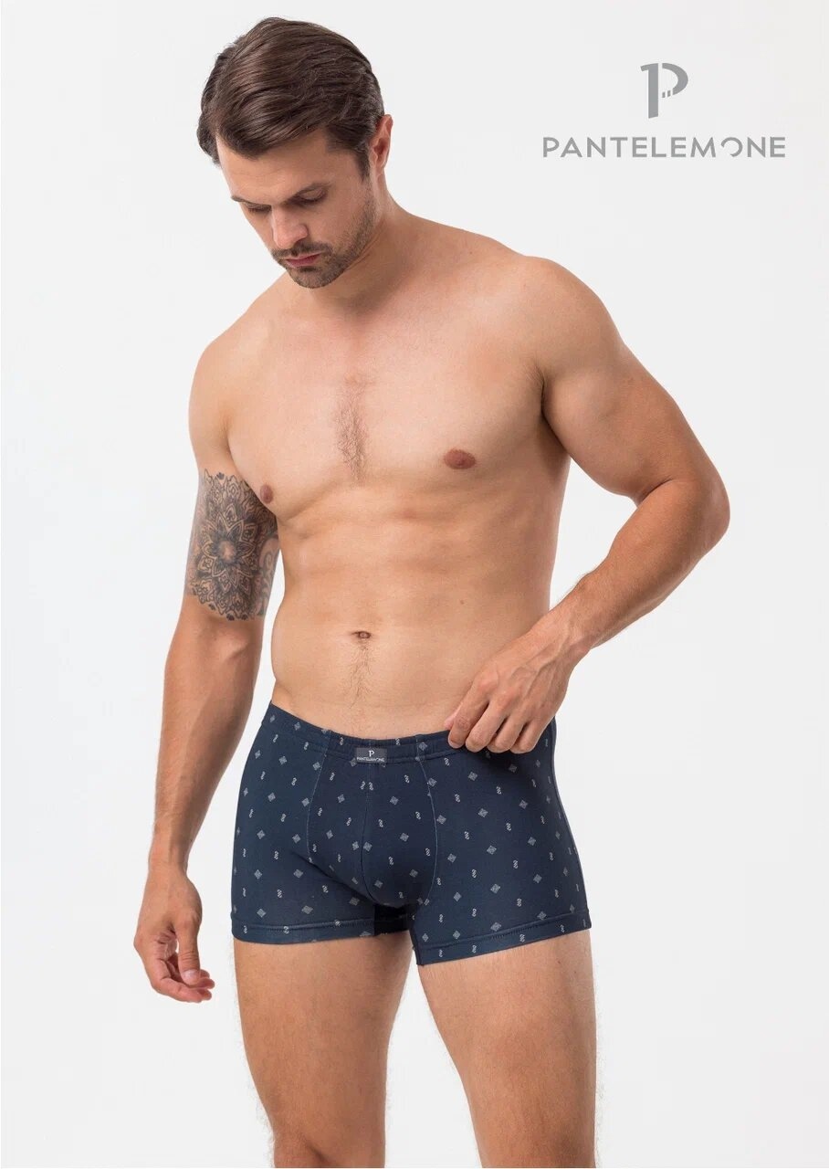 Мужские трусы шорты облегающего силуэта, на удобной закрытой плоской резинке. Выполнены из набивного полотна. Состав: 95% хлопок, 5% лайкра Материал: кулирная гладь набивная, плотность 160 г/м.кв., гребенная пряжа (penye)