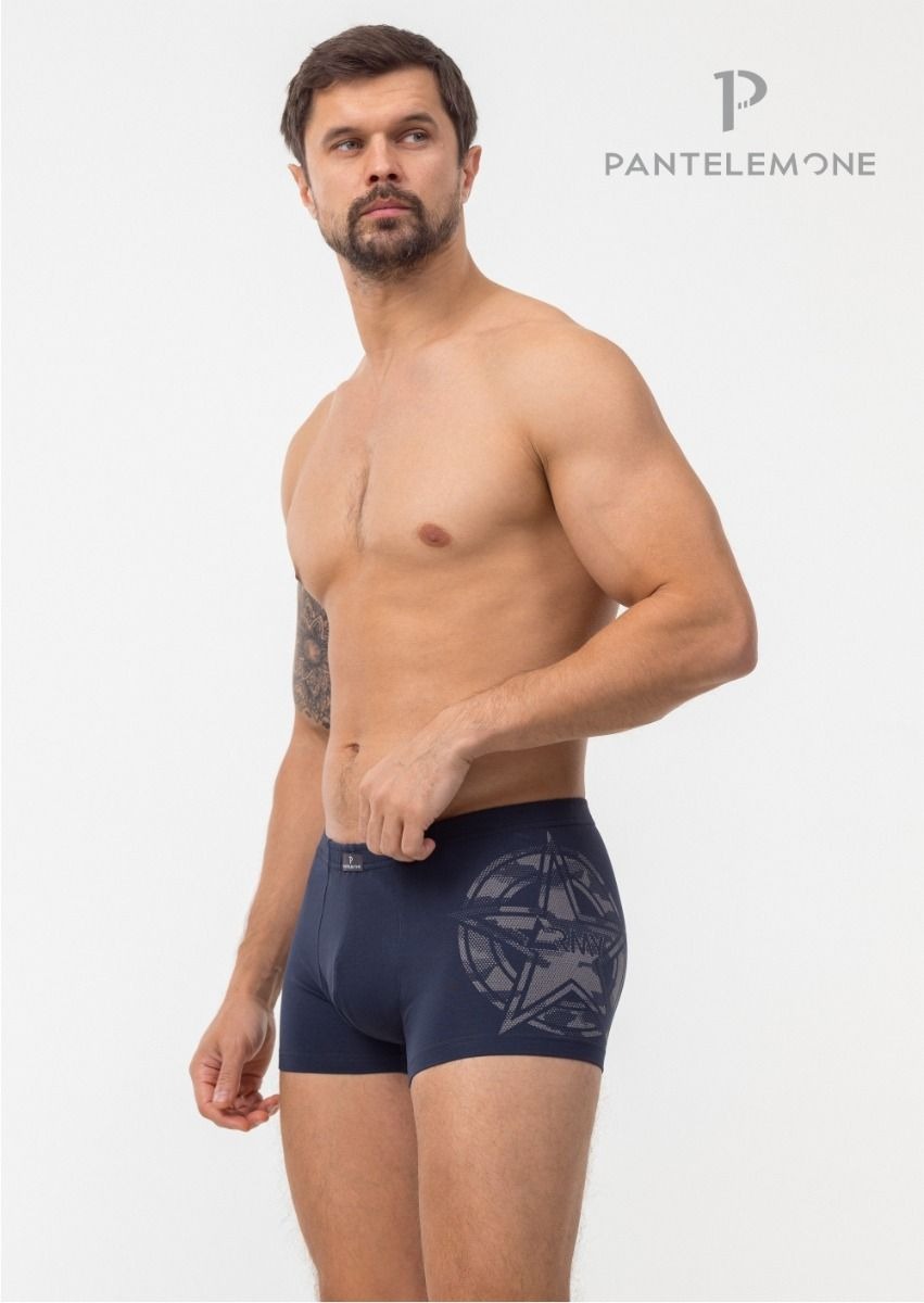 Мужские трусы шорты облегающего силуэта, на удобной закрытой плоской резинке. Выполнены из набивного полотна. Состав: 95% хлопок, 5% лайкра Материал: кулирная гладь набивная, плотность 160 г/м.кв., гребенная пряжа (penye)