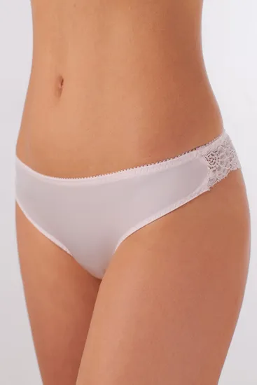 Трусы-бразилиана со средней линией талии. Передняя деталь выполнена из эластичного полотна. Задняя деталь выполнена из эластичного кружева. Проймы передней детали обработаны мягкой эластичной лентой на плоскошовной машине.