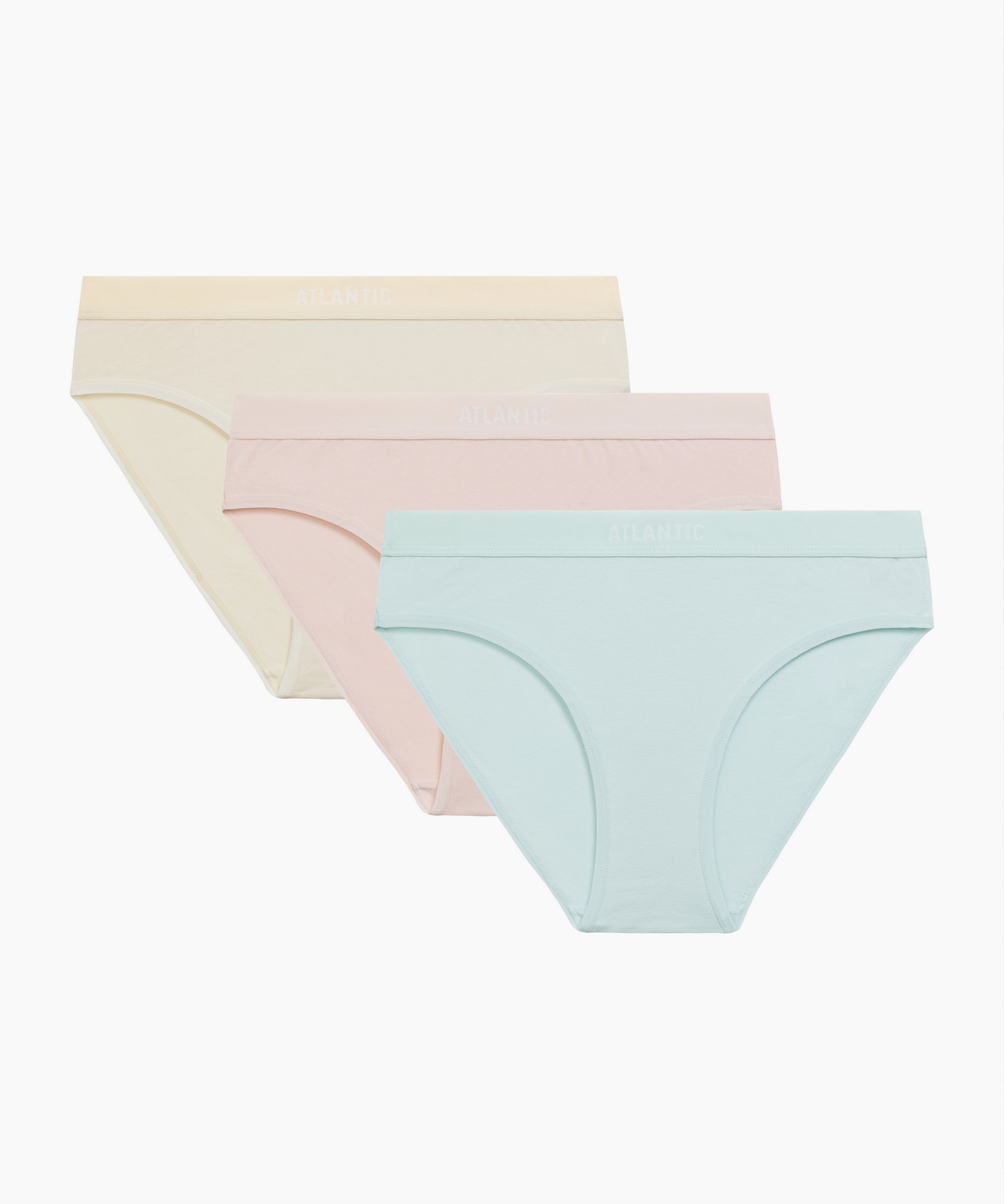 Набор из трех женских трусов-слипов Atlantic в нежных бежевом, ванильном и светло-голубом оттенках сочетает комфорт и элегантность для повседневной носки и активного образа жизни. Модель 3CLP-012E от польского бренда Atlantic выполнена из мягкого хлопка с добавлением эластана, что обеспечивает идеальную посадку и свободу движений. Заниженная линия талии и удлиненный вырез по бедру создают эффект стройности, визуально удлиняя ноги. Брендированная резинка мягко фиксирует изделие, не вызывая дискомфорта, а прочное трикотажное полотно сохраняет форму и цвет после многократных стирок. Универсальный дизайн и пастельная гамма делают набор практичным выбором для женщин с разными предпочтениями.