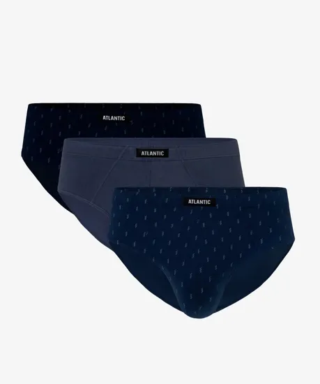 Набор из 3 шт. мужских трусов-слипов Atlantic голубого, темно-синего и темно-голубого цвета. Классические мужские трусы-слипы 3MP-117 от польского бренда Atlantic на каждый день: превосходно подойдут абсолютно любому мужчине как для повседневной носки, так и для активного занятия спортом (например, бега или фитнеса). Анатомический крой этой модели гарантирует идеальную посадку по фигуре и максимальный комфорт. Скрытая туннельная резинка не давит и не натирает при носке, а также обеспечивает контакт только с натуральным материалом. Облегающие мужские трусы слипы имеют достаточно высокую линию талии и широкую боковую часть, поэтому могут подойти к любому типу одежды. В составе используется мягкий, приятный на ощупь 100% хлопок. Трикотажное хлопковое полотно является прочным материалом, устойчивым к высоким температурам и растяжению, благодаря чему нижнее белье надолго сохраняет свой внешний вид и потребительские свойства. В упаковке представлено трое трусов брифов в различных вариантах расцветок - две модели выполнены с контрастным мелким графическим рисунком в классическом стиле, одна модель исполнена в однотонной цветовой гамме. Нижнее белье Атлантик будет превосходным подарком для мужчин всех возрастов: молодым парням и подросткам подойдут модели нижнего белья в яркой цветовой гамме и с паттерном или рисунком, более взрослым мужчинам - нижнее белье в сдержанных или строгих цветах, хотя иногда можно нарушить правила и поэкспериментировать. Кроме того, в нашем интернет-магазине Вы сможете приобрести трусы слипы Атлантик 3MP-117 из наличия по самым выгодным ценам. Широкая размерная сетка с самыми популярными (от S до XXL) и большими (3XL, 4XL) размерами, а также стильная фирменная упаковка нашего нижнего белья помогут однозначно сделать Вам верный выбор!