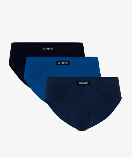 Набор из 3 шт. мужских трусов-слипов Atlantic темно-синего, голубого и темно-голубого цвета. Классические однотонные мужские трусы-слипы 3MP-129 от польского бренда Atlantic на каждый день: превосходно подойдут абсолютно любому мужчине как для повседневной носки, так и для активного занятия спортом (например, бега или фитнеса). Анатомический крой этой модели гарантирует идеальную посадку по фигуре и максимальный комфорт. Скрытая туннельная резинка не давит и не натирает при носке, а также обеспечивает контакт только с натуральным материалом. Облегающие мужские трусы слипы имеют достаточно высокую линию талии и широкую боковую часть, поэтому могут подойти к любому типу одежды. В составе используется мягкий, приятный на ощупь 100% хлопок. Трикотажное хлопковое полотно является прочным материалом, устойчивым к высоким температурам и растяжению, благодаря чему нижнее белье надолго сохраняет свой внешний вид и потребительские свойства. В упаковке представлено трое трусов брифов в различных вариантах расцветок - от строгого классического до яркого молодежного. Нижнее белье Атлантик будет превосходным подарком для мужчин всех возрастов: молодым парням и подросткам подойдут модели нижнего белья в яркой цветовой гамме и с паттерном или рисунком, более взрослым мужчинам - нижнее белье в сдержанных или строгих цветах, хотя иногда можно нарушить правила и поэкспериментировать. Кроме того, в нашем интернет-магазине Вы сможете приобрести трусы слипы Атлантик 3MP-129 из наличия по самым выгодным ценам. Широкая размерная сетка с самыми популярными (от S до XXL) и большими (3XL, 4XL) размерами, а также стильная фирменная упаковка нашего нижнего белья помогут однозначно сделать Вам верный выбор!