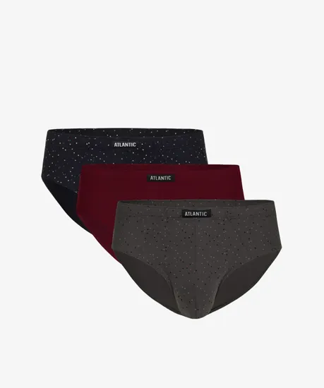 Набор из 3 шт. мужских трусов-слипов Atlantic цвета бургунди, серого и темно-синего цвета. Классические мужские трусы-слипы 3MP-131 от польского бренда Atlantic на каждый день: превосходно подойдут абсолютно любому мужчине как для повседневной носки, так и для активного занятия спортом (например, бега или фитнеса). Анатомический крой этой модели гарантирует идеальную посадку по фигуре и максимальный комфорт.
