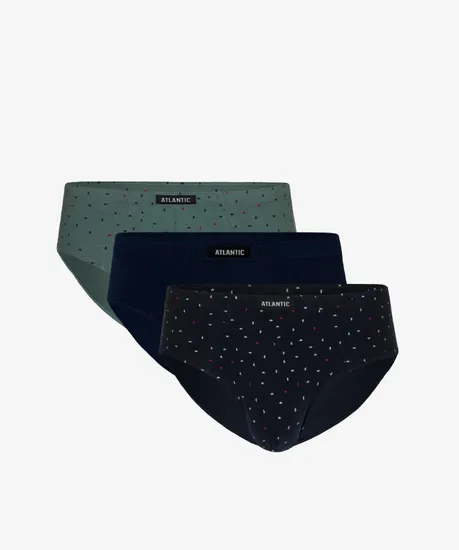 Набор из 3 шт. мужских трусов-слипов Atlantic изумрудного и темно-синего цвета. Классические мужские трусы-слипы 3MP-142 от польского бренда Atlantic на каждый день: превосходно подойдут абсолютно любому мужчине как для повседневной носки, так и для активного занятия спортом (например, бега или фитнеса).