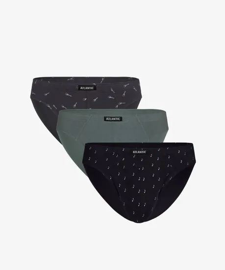 Набор из 3 шт. мужских трусов-слипов Atlantic цвета графит, изумрудного и темно-синего цвета. Классические мужские трусы-слипы 3MP-136 от польского бренда Atlantic на каждый день: превосходно подойдут абсолютно любому мужчине как для повседневной носки, так и для активного занятия спортом (например, бега или фитнеса). Анатомический крой этой модели гарантирует идеальную посадку по фигуре и максимальный комфорт. Скрытая туннельная резинка не давит и не натирает при носке, а также обеспечивает контакт только с натуральным материалом.