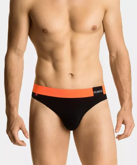 Мужские трусы-слипы Atlantic черно-оранжевого цвета из премиальной коллекции. Коллекция Premium - это выбор взыскательных мужчин, которые делают ставку на высочайшее качество, уникальный дизайн и инновационные технологические решения. Мужские классические однотонные трусы-слипы MP-1566 от польского бренда Atlantic на каждый день: превосходно подойдут абсолютно любому мужчине как для повседневной носки, так и для активного занятия спортом (например, бега, фитнеса или физических нагрузок). Анатомический крой этой модели гарантирует идеальную посадку по фигуре и максимальный комфорт. Внешняя пришивная резинка не давит, не скручивается и не натирает при носке. Облегающие мужские трусы слипы имеют слегка заниженную линию талии и универсальную ширину по бокам, поэтому могут подойти к любому типу одежды. В составе используется бархатистый и очень приятный на ощупь микромодал в сочетании с эластаном. В основе как модала, так и микромодала используется экологически чистое целлюлозное волокно, полученное из натуральной древесины бука. Отличительная разница между ними лишь в том, что микромодал чуть тоньше, чем модал. Такой премиальный материал обладает прекрасными абсорбирующими свойствами благодаря тому, что при его производстве используется гораздо меньше воды, чем при создании других трикотажных тканей. Также модал имеет характерный атласный блеск, визуально напоминающий шелк. Воздушная и легкая текстура микромодала гарантирует максимально комфортные тактильные ощущения для тела во время носки. Данная модель мужского нижнего белья представлена несколькими вариантами цвета, а брендированная резинка из микрофибры с молочной нитью обеспечивает приятные тактильные ощущения для кожи. Нижнее белье Атлантик будет превосходным подарком для мужчин всех возрастов: молодым парням и подросткам подойдут модели нижнего белья в яркой цветовой гамме и с паттерном или рисунком, более взрослым мужчинам - нижнее белье в сдержанных или строгих цветах, хотя иногда можно нарушить правила и поэкспериментировать.