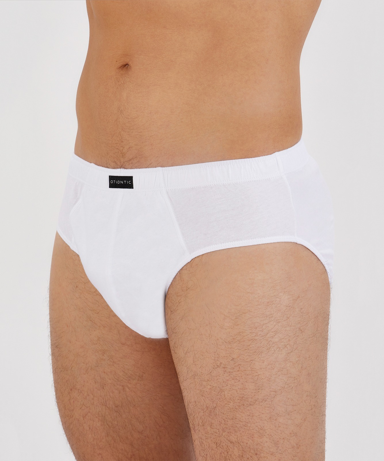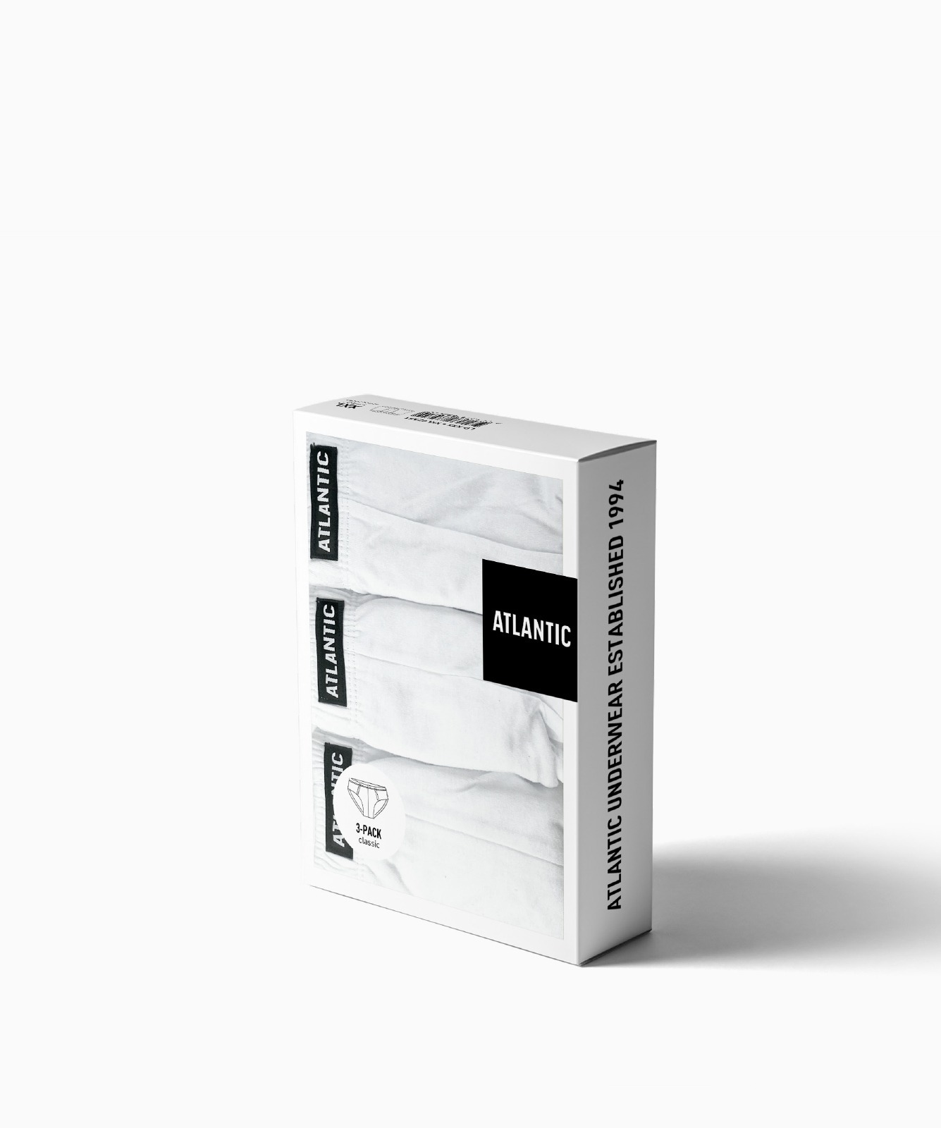 Набор из 3 шт. мужских трусов-слипов Atlantic белого цвета из базовой коллекции. Коллекция Basic - это постоянная коллекция польского бренда Atlantic, включающая в себя как мужское, так и женское нижнее белье, выполненное в базовой цветовой гамме.