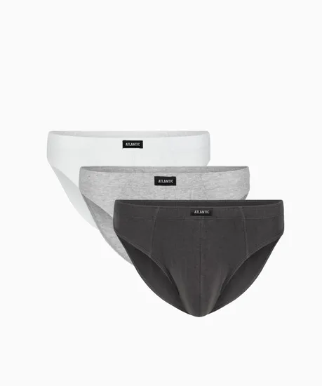 Набор из 3 шт. мужских трусов-слипов Atlantic цвета серый меланж, графит и белого цвета из базовой коллекции.