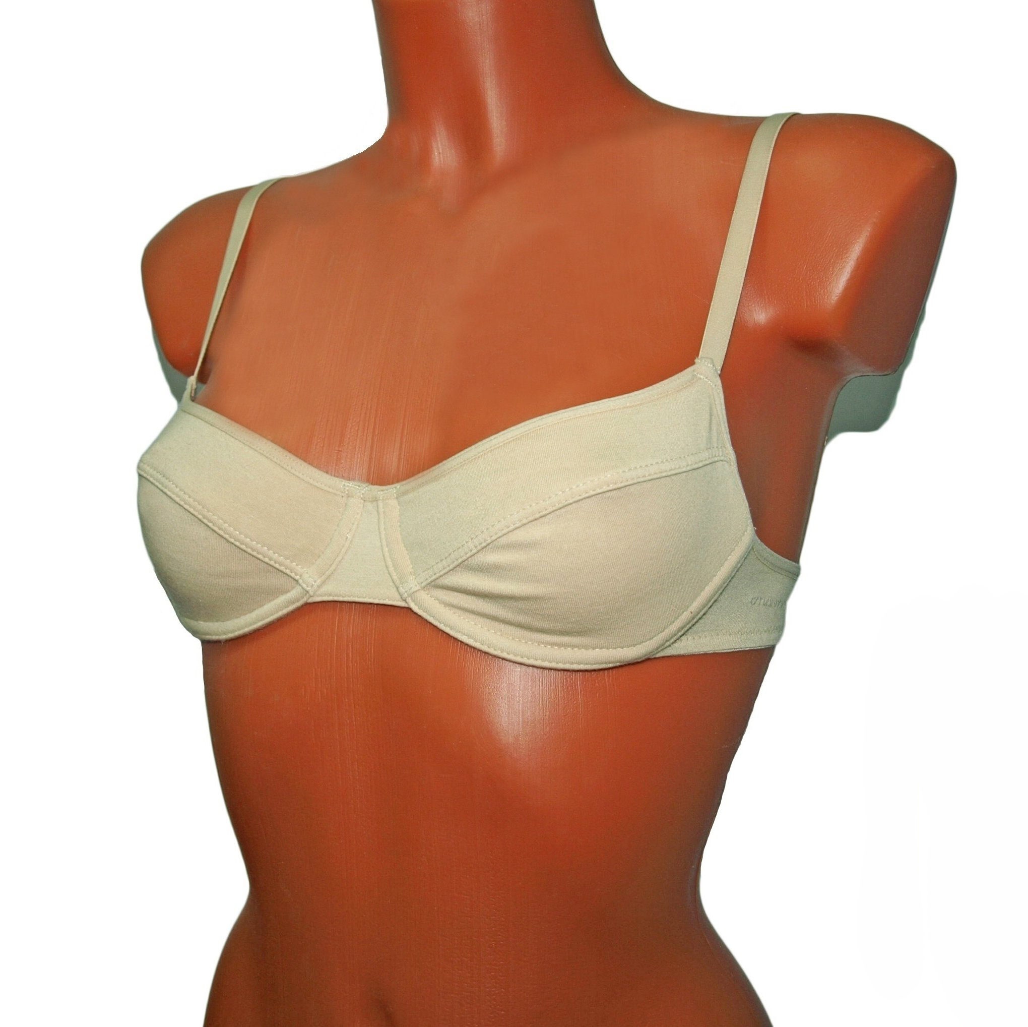 Бюстгальтер выполнен из мягкого хлопка на косточках. Тонкие, регулируемые бретели, застежка на двух крючках. Состав: 95% хлопок, 5% эластан.