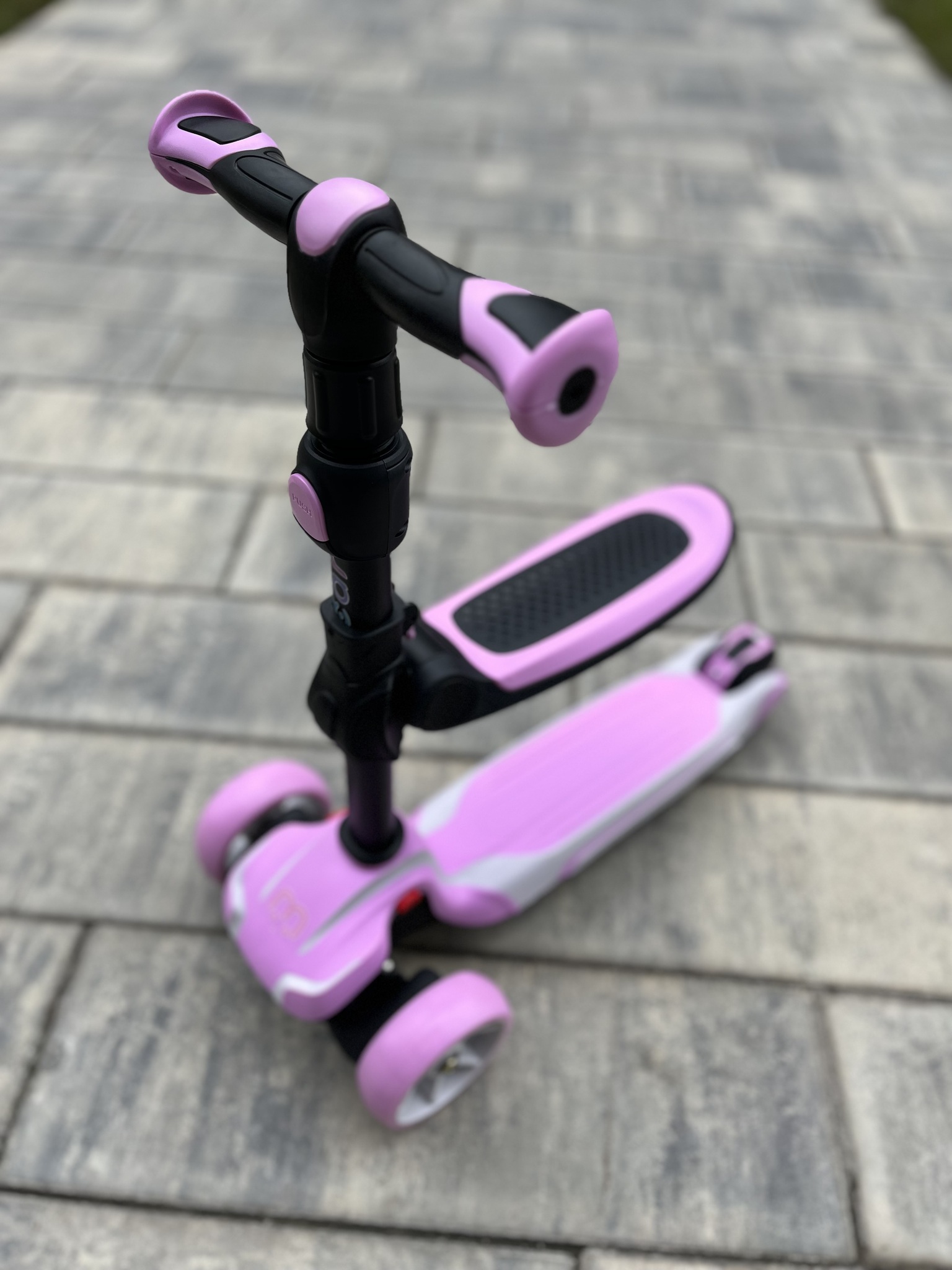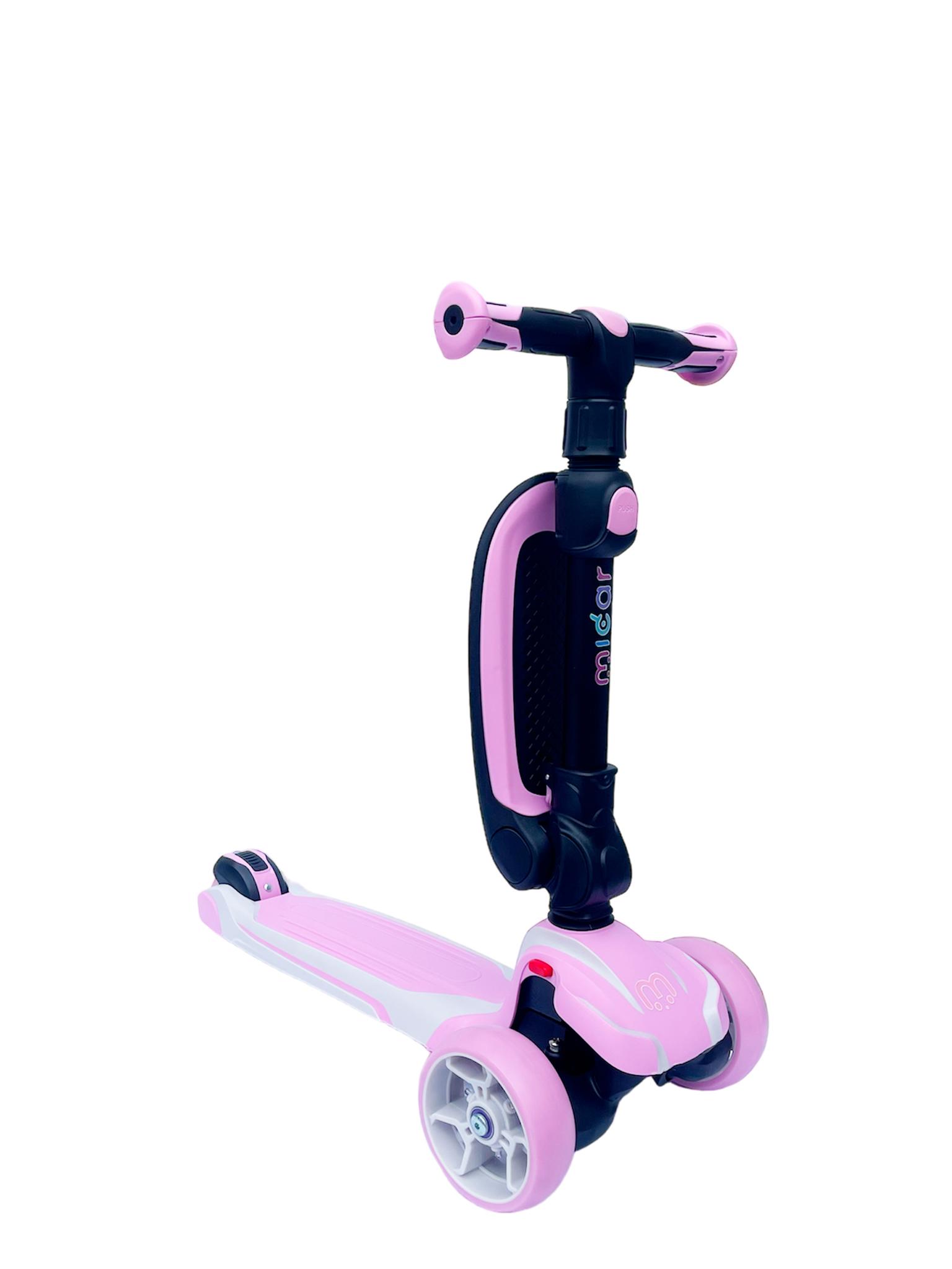 Самокат-беговел со светящимися колёсами 3 в 1 Scooter Micar Moby Pink