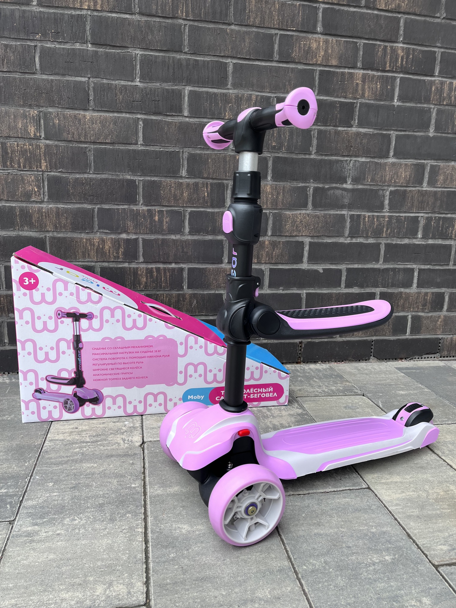 jva60c1j780yfvbjСамокат-беговел со светящимися колёсами 3 в 1 Scooter Micar Moby Pink - купить по выгодной цене | MERINOWOOL.RU