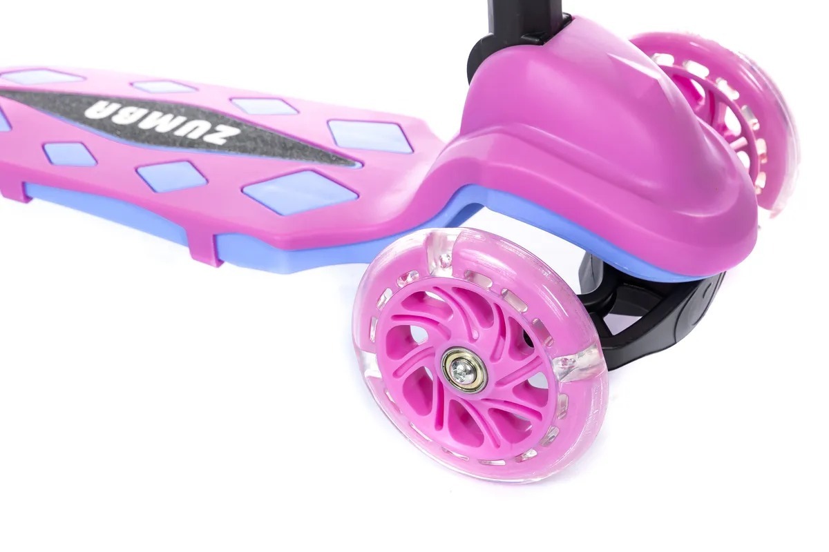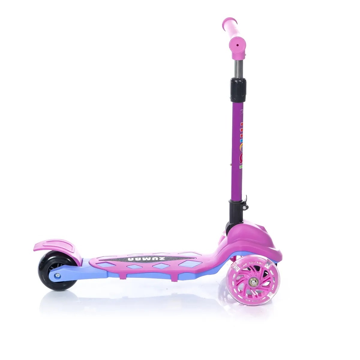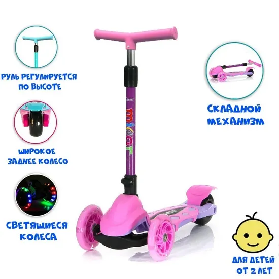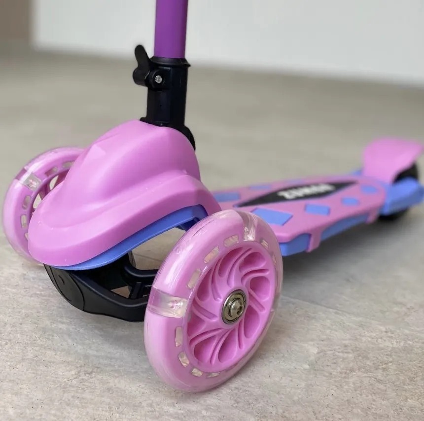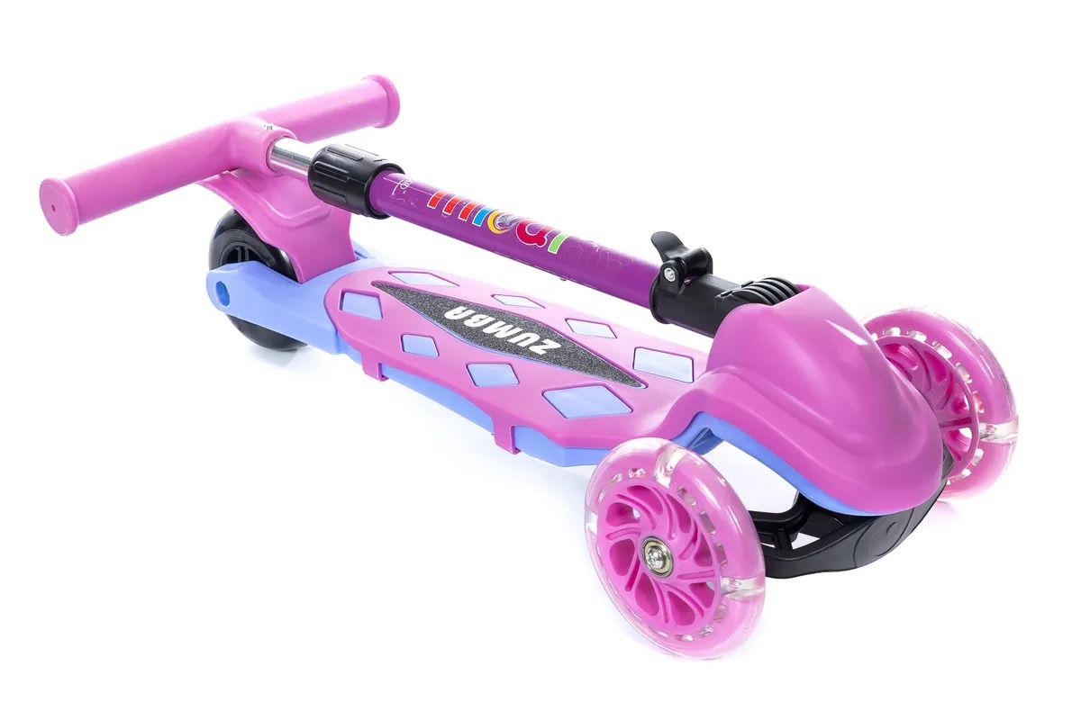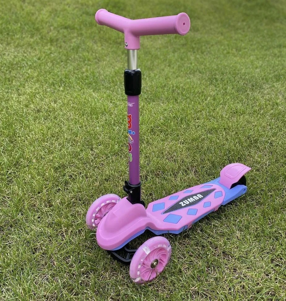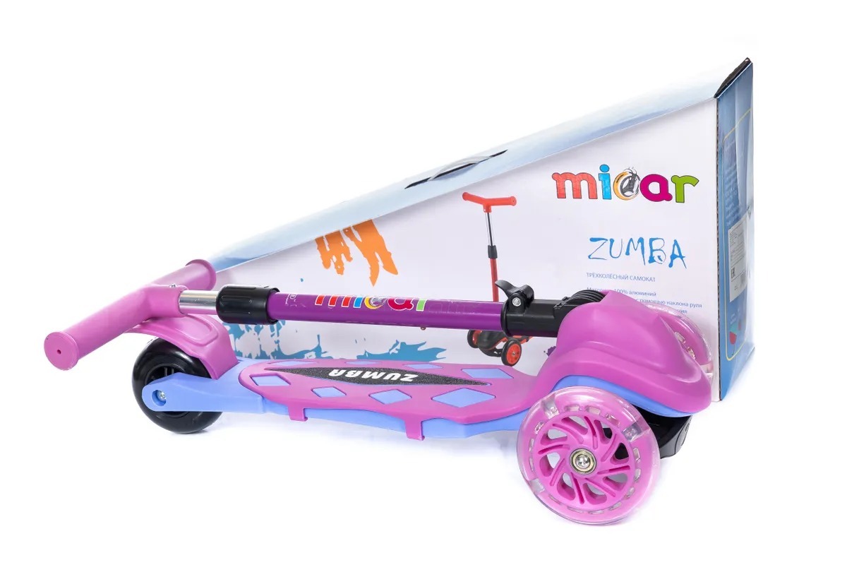 Детский складной трёхколёсный самокат со светящимися колёсами Scooter Mini Micar Zumba. Cамокат Scooter Mini Micar Zumba создан специально для малышей которые делают "первые шаги" в катании, и подходит от 2 лет. Самокат выполнен из полипропилена и алюминия, благодаря чему его вес максимально облегчен, что так важно для малыша.