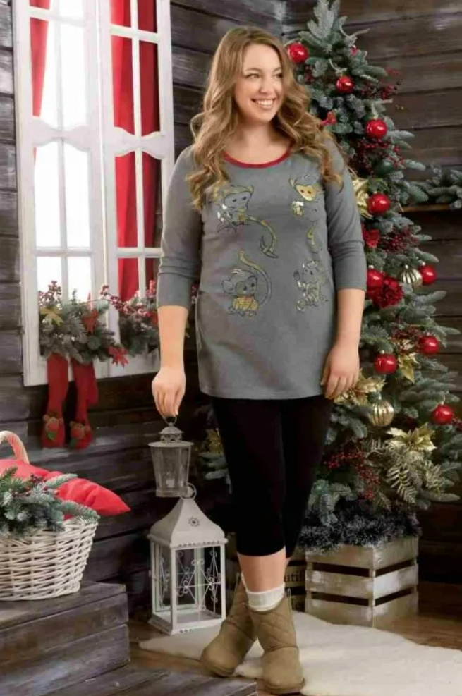 Комплект трикотажный (туника и лосины) с символом года станет отличным подарком для вас и ваших близких. Особенности: принт-металлик.