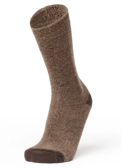 Пряжа носков состоит из преобладающего процента натуральной шерсти мериносов. Такая шерсть обладает свойствами терморегуляции - не перегревает, а аккумулирует собственное тепло тела, создавая комфортную температуру. Термоноски решают две проблемы, возникающие при длительном ношении резиновых сапог, - переохлаждение и потливость. Вязка термоносков обладает махровым плетением нитей. Махровые петли создают воздушную прослойку, обеспечивая дополнительное утепление и микровентиляцию в резиновых сапогах.