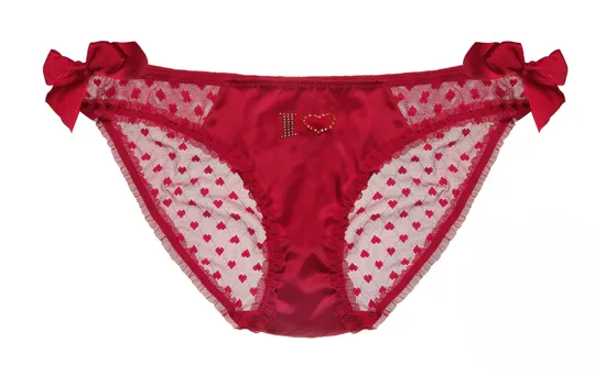 Сексуальные трусики мини бикини. Сшиты из прозрачного меша с принтом в виде сердечек и в сочетании с гладким сатином. Аппликация из кристаликов, бантиков по бокам делают из них идеальный подарок. Состав: 45% полиэстер, 43% нейлон, 13% эластан.