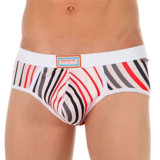Мужские трусы брифы бежевые в разноцветную полоску Boefje