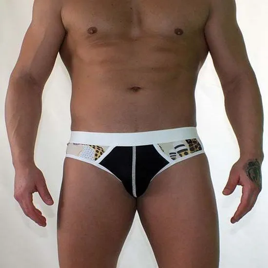 Мужские трусы брифы черные с бежевыми вставками Van Baam