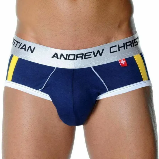 jva60c1j780yfvbjМужские трусы брифы синие с передним пуш-ап Andrew Christian Shock Jock Racer Brief Navy - купить по выгодной цене | MERINOWOOL.RU