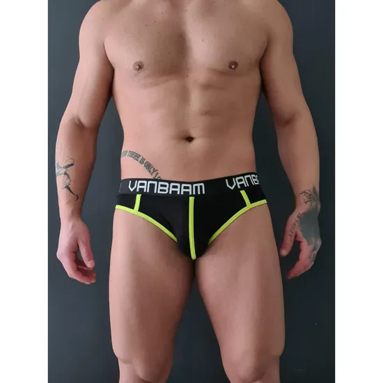 Мужские трусы джоки черные с салатовой окантовкой Van Baam