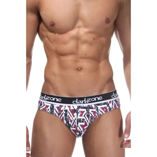 Мужские трусы слипы темно-синие с разноцветным принтом DARKZONE DZN6308