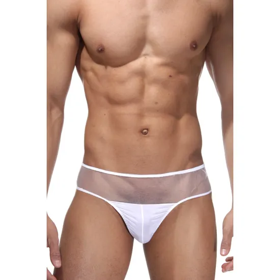 Мужские трусы тонги белые с прозрачным поясом LaBlinque LB15107