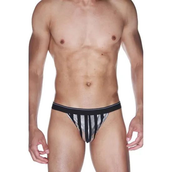 Мужские трусы тонги в черные в серебристую полоску LaBlinque LB15536