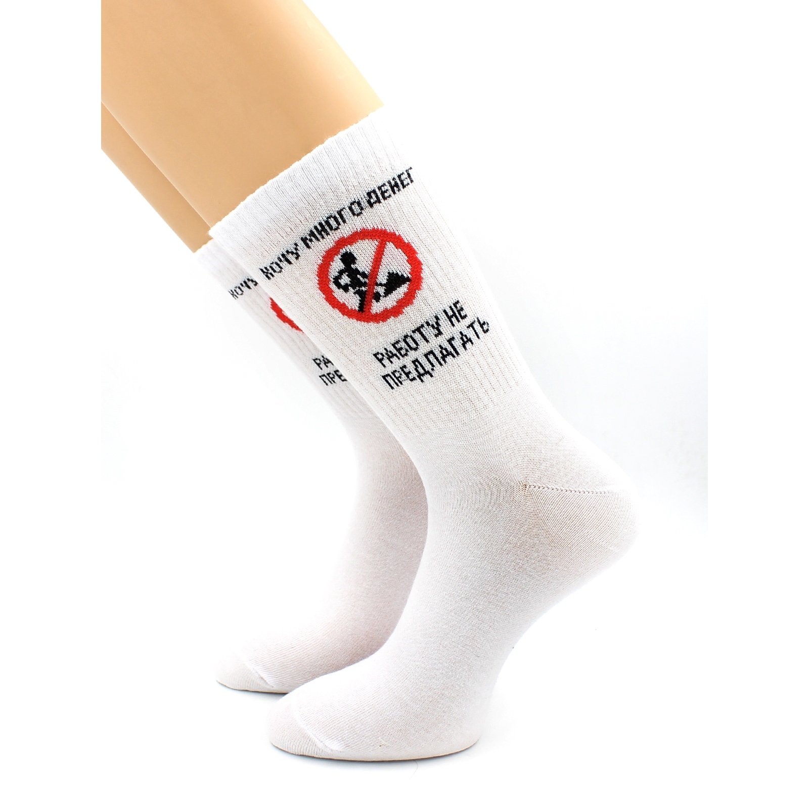 Носки с надписью "Хочу много денег. Работу не ..." белые Hobby Line