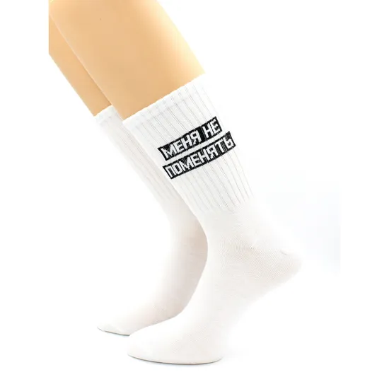 Носки с надписью "Меня не поменять" белые Hobby Line