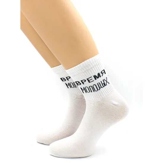jva60c1j780yfvbjНоски с надписью "Время молодых" белые Hobby Line - купить по выгодной цене | MERINOWOOL.RU