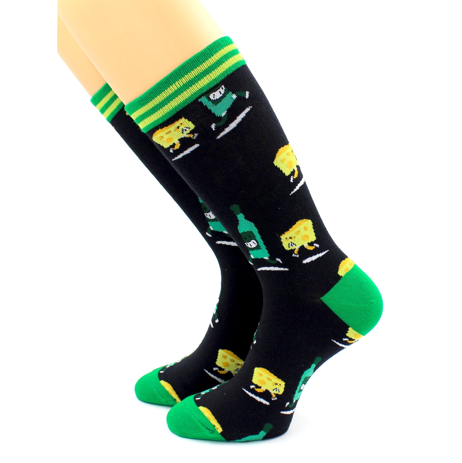 Носки с принтом "Бутылка и сыр" черные Hobby Line
