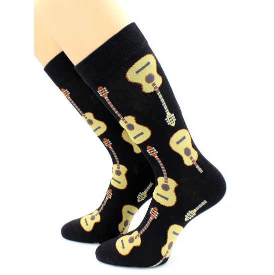 jva60c1j780yfvbjНоски с принтом "Гитары" черные Hobby Line - купить по выгодной цене | MERINOWOOL.RU
