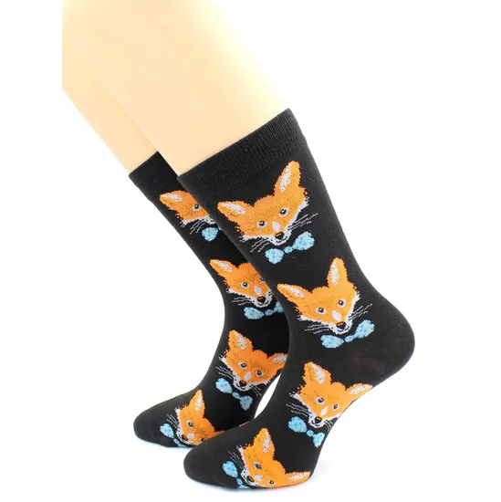 jva60c1j780yfvbjНоски с принтом "Хитрый лис" черные Hobby Line - купить по выгодной цене | MERINOWOOL.RU