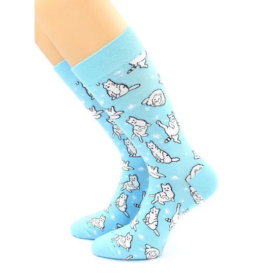 jva60c1j780yfvbjНоски с принтом "Котики" голубые Hobby Line - купить по выгодной цене | MERINOWOOL.RU