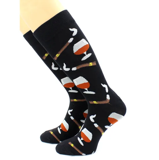 jva60c1j780yfvbjНоски с принтом "Ликер и сигара" черные Hobby Line - купить по выгодной цене | MERINOWOOL.RU